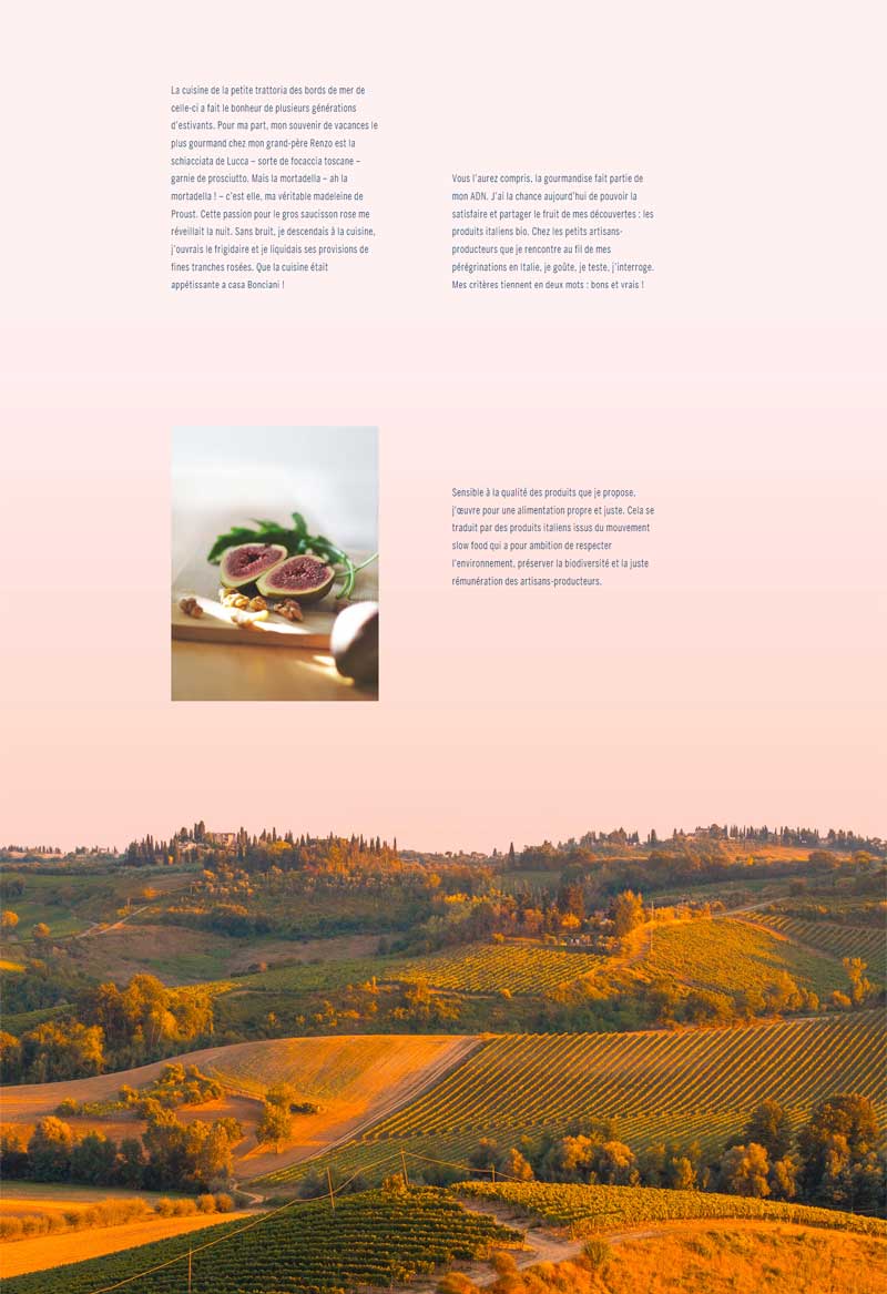Grossiste de produits italiens haut de gamme pour restaurateurs, traiteurs ou épicerie fines, l’entreprise créée en 2020 pâtissait d’un manque de visibilité. La difficulté du projet résidait dans le fait qu’il a fallu ajouter et intégrer des nouveaux contenus sur un site internet très visuel et épuré.